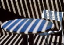 In this example the lines have been created and were not there naturally. These lines are created by shadows on to a white surface which gives the perfect contrast to the black lines. The lines do not give any focus on the the table and chair as they are guiding the eye to the them.