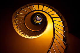 This photograph is showing shape in the way in which the spiral staircase is rounded and eventually creates a circle in the center of the photograph. This draws the eye to the circle due to the stair case leading to the circle in the middle of the photograph. The stairs almost look abstract due to them becoming blurred as they go higher.