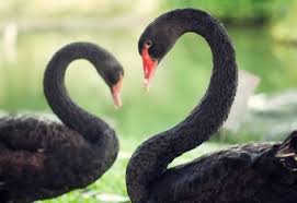 In this photograph there are 2 black swans who necks are creating the shape. Their necks almost make the shape of a heart which i feel is strange as the swans are black which doesn't relate to love whereas white swans do. The neutral background allows the swans to stand out and be the central focus of the photograph.
